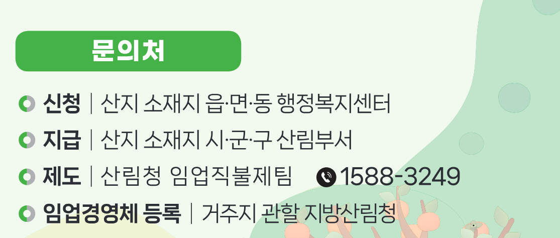 산림청에서도 올해 신청 기간을 연장하고 시스템을 개선하는 등 많은 노력을 기울인 만큼, 이번 기회를 놓치지 마세요. 혹시 서류 준비 중에 막히는 부분이 있다면 언제든 산지 소재지 행정복지센터나 콜센터(1588-3249)를 적극 활용하시기 바랍니다.