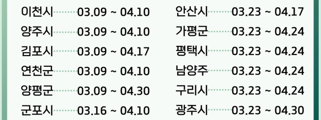 정확한 날짜는 각 시·군 공고에 따라 다릅니다.