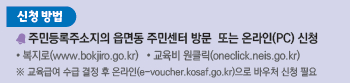 행정복지센터 방문 또는 복지로/교육비 원클릭 온라인 신청