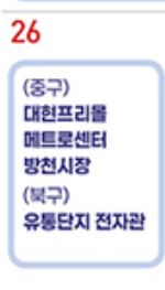 방촌시장 (동구), 불로전통시장 (동구), 유통단지산업용재 (북구),