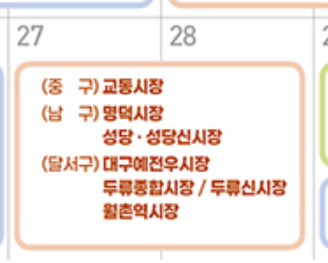 영선 · 영선,신시장 (남구), 팔달 · 팔달신시장 (북구), 지산목련시장 (수성구)