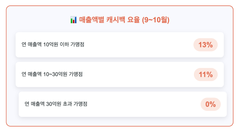 연 매출 10~30억 원 가맹점: 11% 캐시백