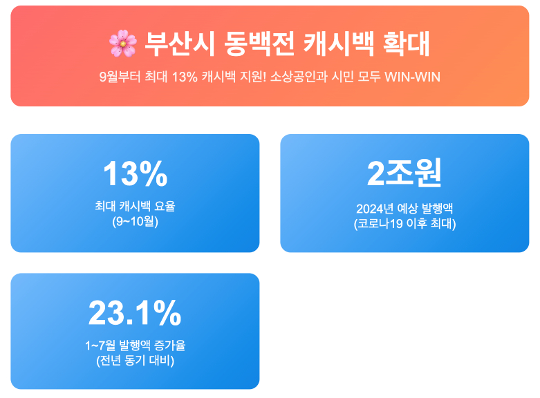 올해 9월부터 부산 지역화폐인 동백전 캐시백 혜택이 무려 최대 13%까지 인상됩니다. 숫자만 보면 “13%가 뭐 대단해?” 싶을 수도 있는데요, 실제로 따져보면 결코 작은 변화가 아닙니다. 저는 개인적으로 이 소식을 듣고 “이제 장보러 갈 때 조금이라도 더 알뜰해질 수 있겠구나” 하는 생각이 들었습니다.