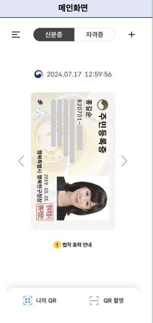 스마트폰에 저장하여 사용할 수 있으며, 온·오프라인에서 신원 확인이 가능합니다.