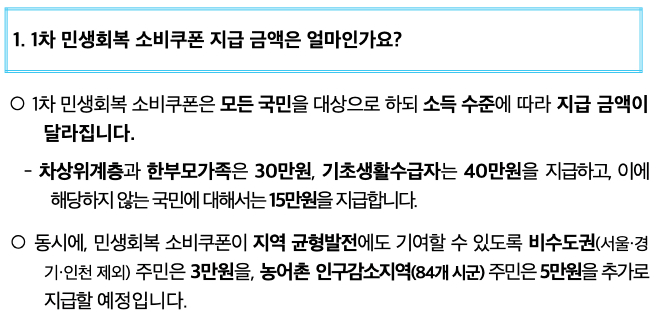 이번 민생회복 소비쿠폰 사업은 소득 수준과 지역에 따라 차등 지급됩니다.