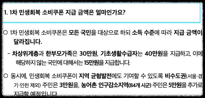 ‘민생회복지원금’은 말 그대로 코로나19 이후 어려움을 겪는 국민들의 소비를 돕기 위한 정부의 정책 중 하나예요.