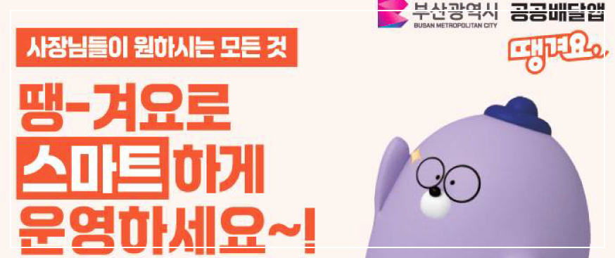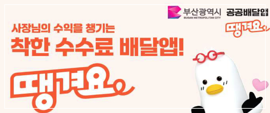 부산시는 대형 배달앱의 높은 수수료 때문에 어려움을 겪는 소상공인을 돕기 위해 공공배달앱 부산 땡겨요를 운영하고 있습니다.