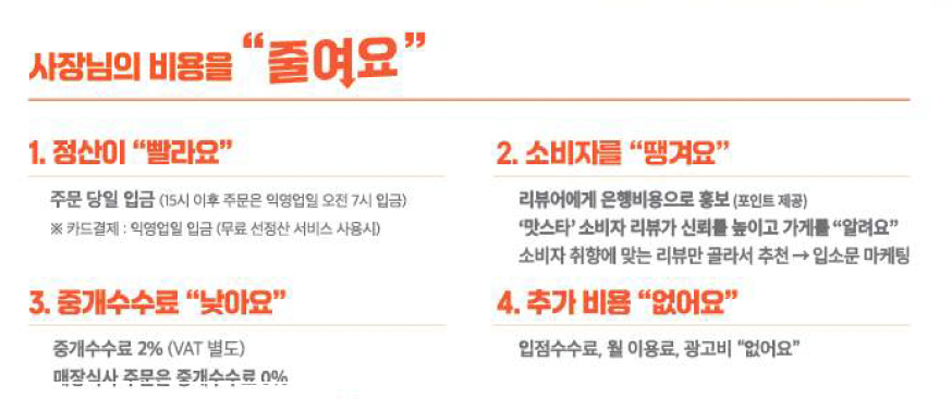 부산지역 소상공인 매출 도움 → 주문할 때 뿌듯 수수료 저렴 → 장기적으로 가맹점이 늘어날 가능성 큼