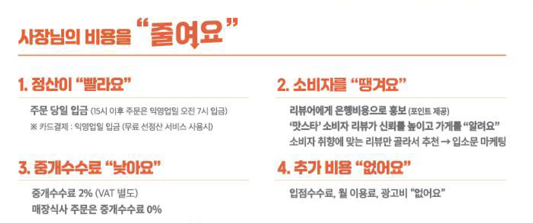 게다가 입점 수수료, 월 이용료, 광고비까지 모두 없앤 ‘3무 정책’을 채택해 소상공인들의 부담을 확 줄였답니다.
