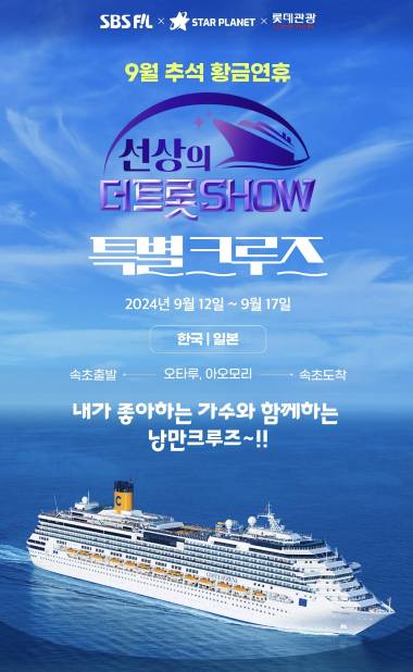크루즈 여행도 즐기고 내가 좋아하는 트로트 가수들의 공연도 볼수 있는 절호의 기회네요.