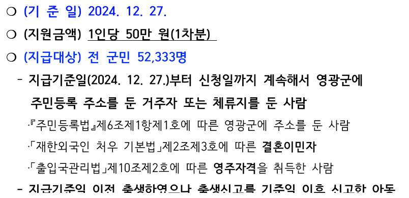 기준일(2024. 12. 27.)부터 신청일까지 영광군에 주민등록 주소를 둔 자.