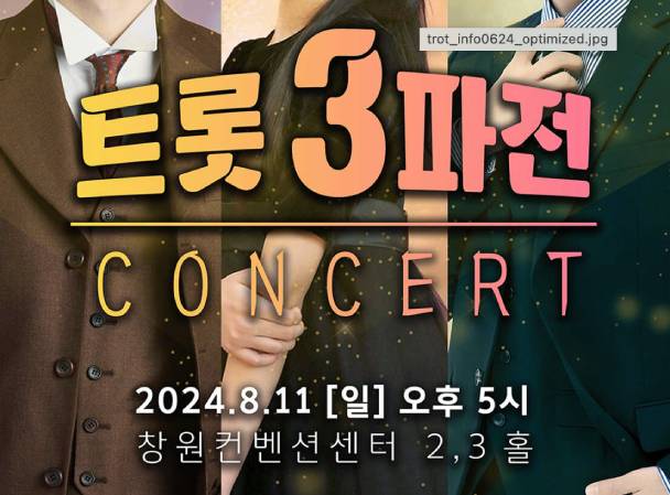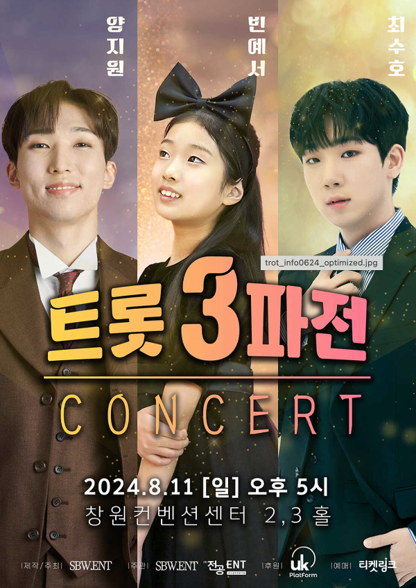 이 콘서트에서는 3인 3색 아티스트들이 꾸미는 아름다운 무대, 각자의 매력을 발산하며 다채로운 세트리스트와 함께 관객들에게 즐거움을 선사할 예정입니다. '트롯 3파전'에서 즐거운 시간되시길 바랍니다.
