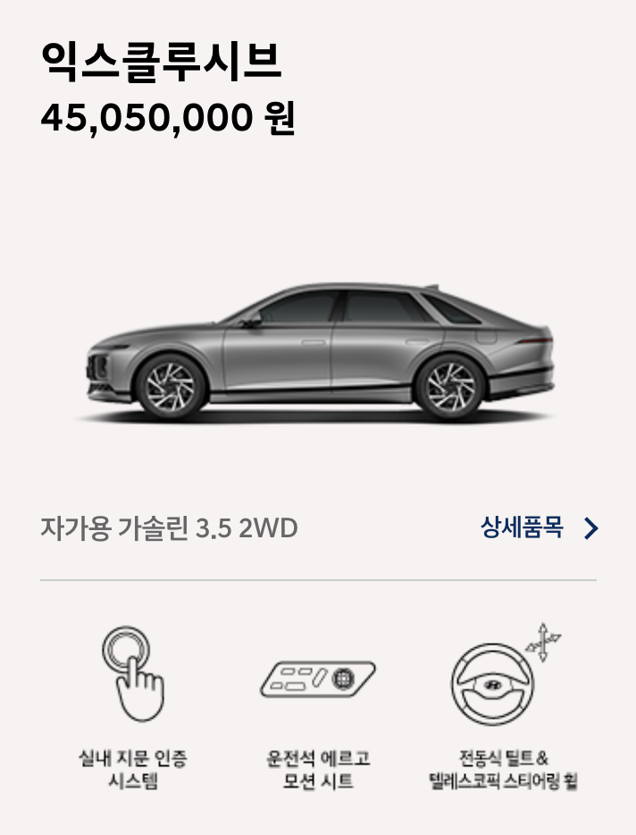 - 첨단 안전 시스템: 차로 유지 보조(LFA) 2, 고속 도로 주행 보조(HDA) 등 최첨단 안전 기능 기본 적용