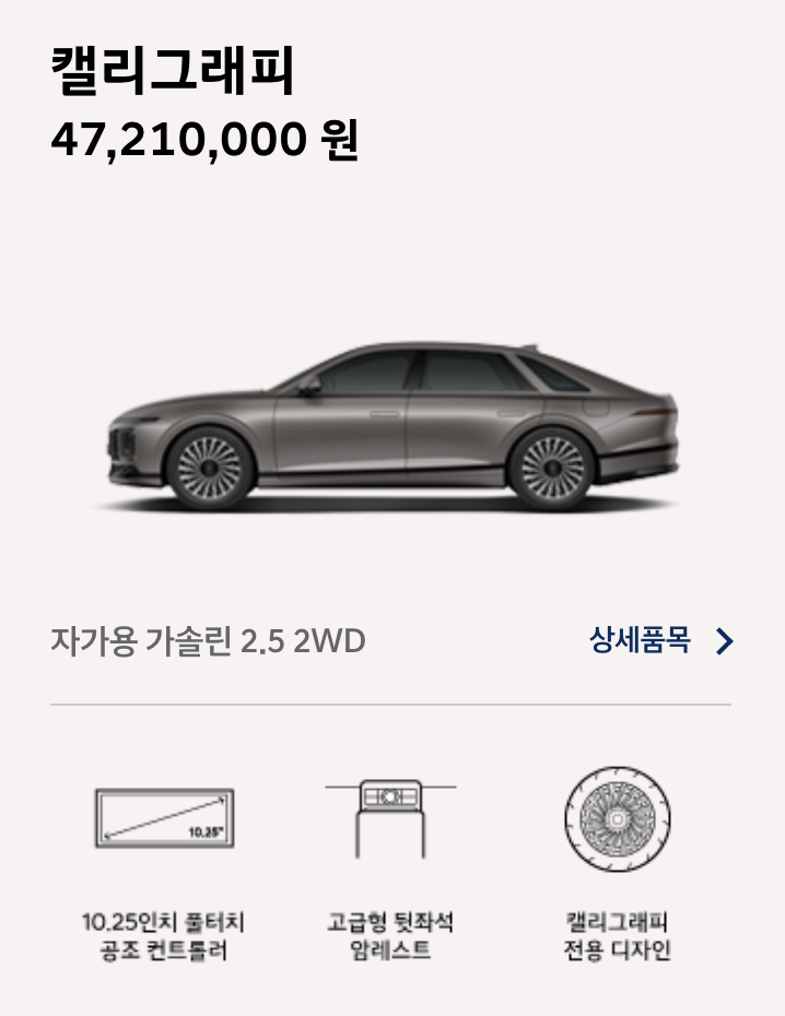- 향상된 편의성: 12.3인치 디지털 계기판, 14.5인치 터치스크린, 헤드업 디스플레이, 3열 좌석 열선, 네온 앰비언트 라이트, 12개 스피커 헤드업 사운드 시스템 등 다양한 편의사양 제공
