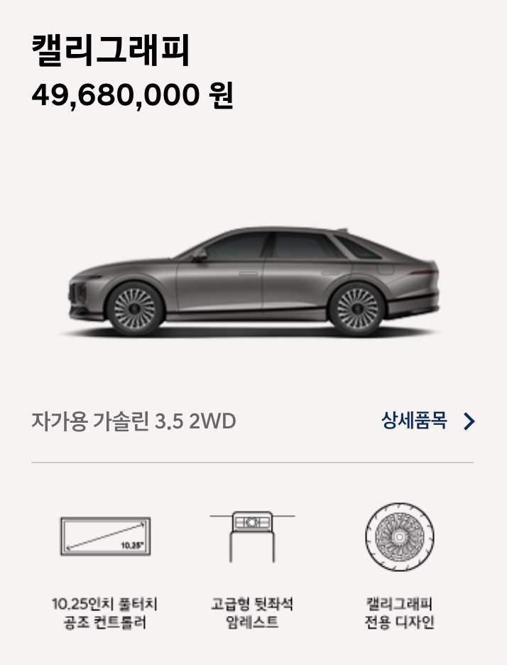 - 다양한 파워트레인: 가솔린 2.5ℓ, 가솔린 3.5ℓ, 하이브리드 3가지 파워트레인 선택 가능