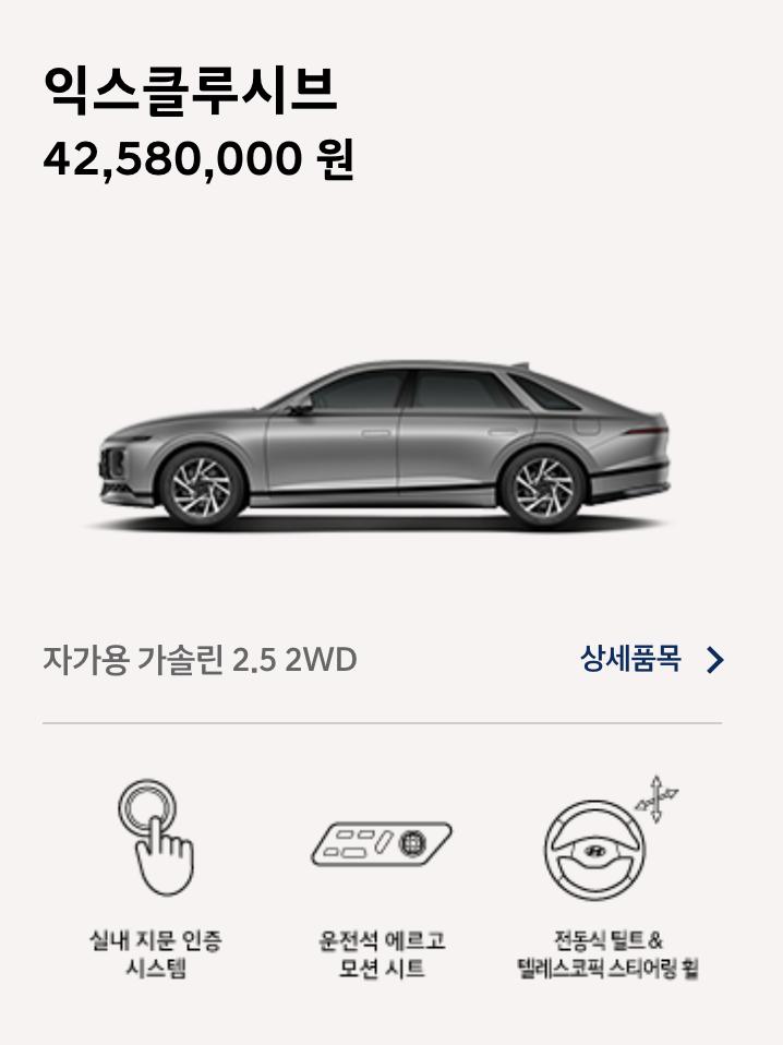 - 첨단 안전 시스템: 차로 유지 보조(LFA) 2, 고속 도로 주행 보조(HDA) 등 최첨단 안전 기능 기본 적용